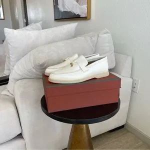 ❌SOLD❌ LORO PIANA WHITE GOLD LEATHER SUMMER CHARM LOAFER