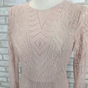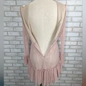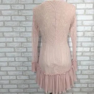 Saints + Secrets Small Dreamy Long Sleeve Blush Pink Ruffle Mini Dress
