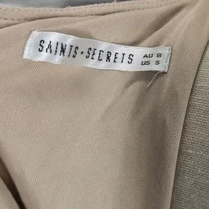 @mintathom Hi, sorry, I don't have a picture of it on. I have only tried it on indoors and it did not appear to be see through. Sadly, it was a tad small for me. The dress does have a nude/tan liner on the main body and sheer sleeves. I just updated my listing to include a stock photo of the dress being modeled. Hope that helps! Let me know if you have any other questions.