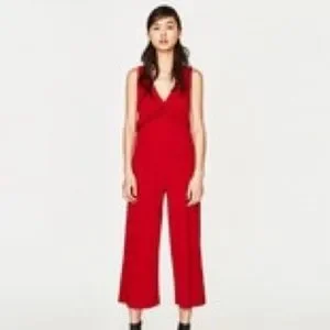 Zara Red Knit Frill Jumpsuit