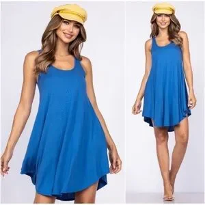 New USA MADE Basic Blue Tank Swing Dress Women's Summer Casual Beach Dress