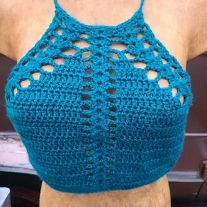 handmade crochet crop top made from super soft 100% acrylic yarn. size m-l with adjustable lacing and some stretch. I made this as a sample for custom tops I make but I no longer need it so I am selling it. :) I can provide exact measurements if necessary! offers are welcome and appreciated. please refer to the photos as they are part of the item description.