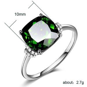 "Vintage Square Green Zircon Emerald 925 Silver Ring for Women, VIP197