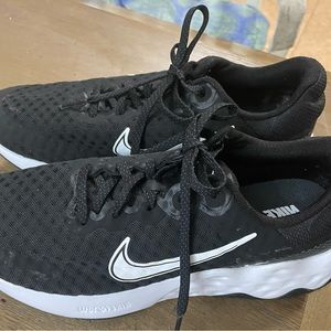 Nike RENEW RIDE 3 Women's Size 9 Black White DC8184-001 Running Shoes. Very good used condition. When everyday runs are on the menu, the Nike Renew Ride 3 comes through with a smooth and soft ride. It's got a secure fit and cozy feel, geared for those looking to find their running potential. It's so comfortable, you'll want to keep wearing it after your run. Breathable and Durable lightweight mesh in the upper keeps you feeling fresh. A thin overlay at the toe helps resist abrasion. Comfortable Fit with cushioned collar and tongue are designed with intuitive touch points for easy on and off. Combined with the breathable feel of the upper, the shoe delivers a snug, secure fit. Softer than previous versions, foam helps absorb impact as your feet hit the ground. It's also wrapped around the heel, creating a secure clip for your foot. Nike added more foam for a smooth transition from heel to toe. It results in an extra spring to your step. Retail price $85. Smoke free, pet free home.