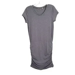 Athleta Size S Dress T-shirt Side Ruched Jersey Knit Athleisure Heathered Gray