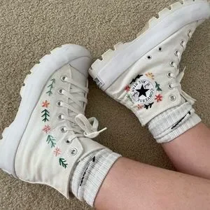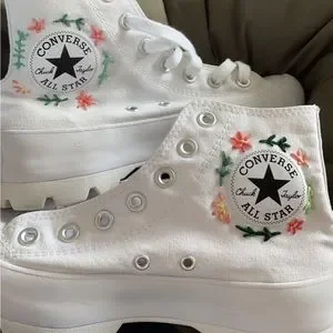 Hand-embroidered white platform converse!