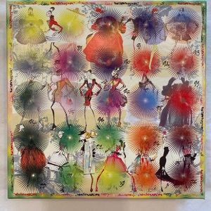 One is a scene with women modeling fashion with light flashes all around. The second is a beautiful floral design.