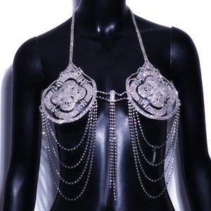 Crystal Bra Top Chain Bikini Jewelry Tassel Body Chain Rhinestone Chain Lingerie