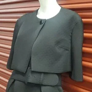 Unger Jet Black Cocktail Dress & Jacket Crop Bolero Blazer Size 10