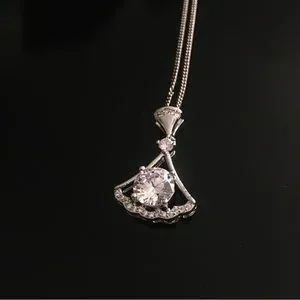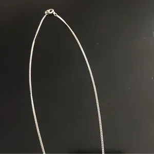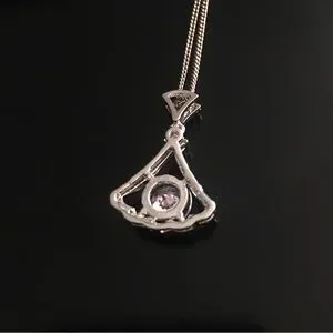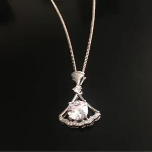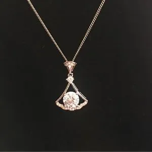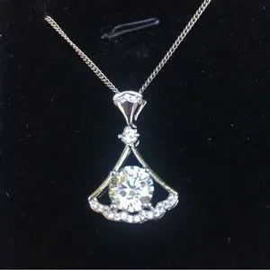 Silver necklace with clear cz stones. NOT STERLING. Measures 9 1/4” long including pendant. Large center stone surrounded by smaller stones, really sparkles in the light or sun. Comes in a nice gift box. Very beautiful necklace. New, never worn.