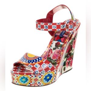 Dolce & Gabbana Leather Floral Mambo Wedges - Sz 9