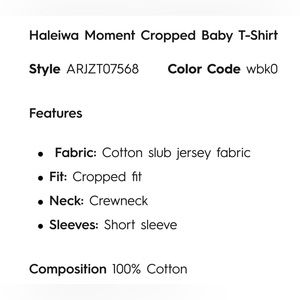 NWT Roxy Haleiwa Moment Cropped Baby T Shirt. Size Large. 100% cotton. Color: White. Please see additional detailed description above.
