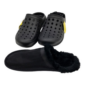 Joybees Black Washable Removable Fur Lined Slip On Garden Clogs Slippers 9