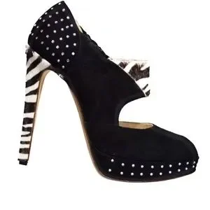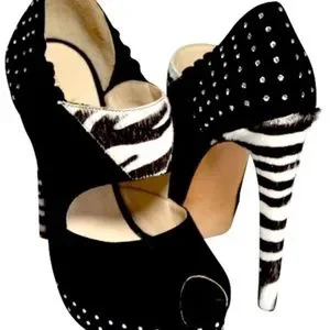 Black/White Zebra Print Ponyhair Swarovski Crystal Platforms
