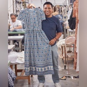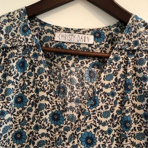 Christy Dawn’s The Dawn Dress in Nilah Floral print. The perfect shades of blue with built in boarder print along the hemline. Classic shape with short sleeves, snap at front and drawstring waist detail. Only tried on at home, see pics for approximate measurements. This was one size/OS when ordered but I’m coding as a small for poshmark