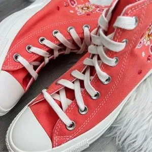 Warm colors and intricate embroidered details put a summer-ready spin on your favorite sneakers. Designed to keep you cool, this edition comes in breathable, mesh-lined canvas for comfort under the sun. As always, standby Chuck Taylor design elements keep your look clean, classic, and totally unmistakable.