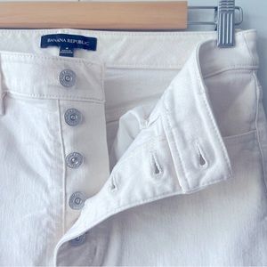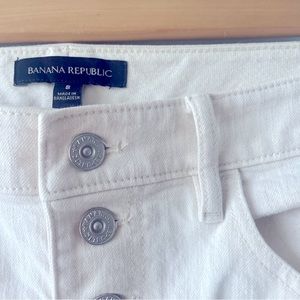 Banana republic white jean skirt with a little bit of stretch, raw edge bottom and button fly. Pencil style with slit in back. Classic, casual, pairs well with so many tops. Great condition.