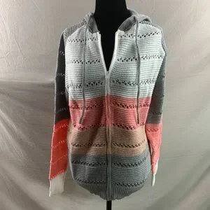 Pointelle Knit Drawstring Zip Hooded Cardigan