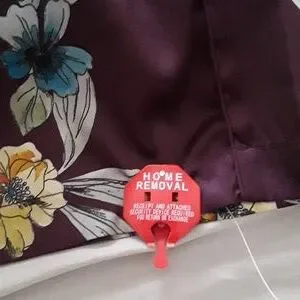 Lexi Stella pant. 92% silk, 8% spandex. elastic waist with drawstring, side pockets, piping. handwashable. gorgeous floral pattern of blues, greens, golds on deep purple background.