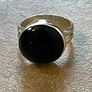 Sterling silver round onyx ring is simple and cute. Can be worn with casual and dress up attire. Does not have 925 stamp but definitely is Sterling.
