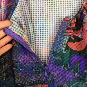 Half zip front, semi sheer check fabric, gingham (see close ups), very breezy, flowy and comfortable fabric, very lightweight woven fabric