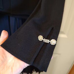 ESCADA 3 Piece sweater set and flared, wide leg pleated pants with zipper closure and Swarovski Crystal Buttons on the front, sleeves and sides of the sweater tank