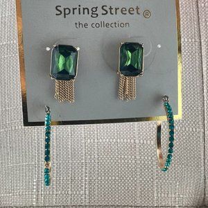 Spring Street the Collection Women Earrings GreenGold Tone Fashion Jewelry New