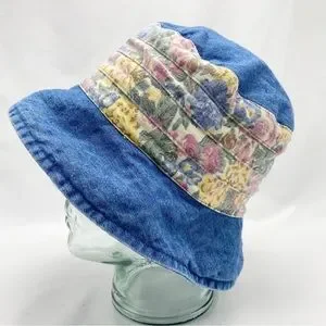 Vintage 90’s Floral Print Blue Jean Denim Bucket Hat