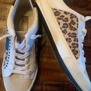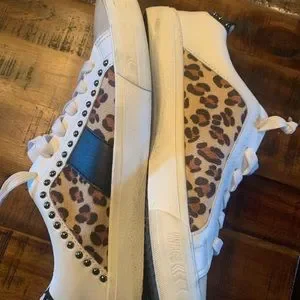 Vintage Havana Dayna Crazy Leopard Studded Leather Sneakers size 10 come in great condition. Features pops of leopard print with an ultra soft leather upper, studded detailing throughout with a distressed style, no tie laces, and rubber bottom sole. Comes from a smoke free home. If you have any questions please let me know.