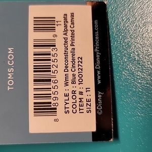 LIMITED EDITION Disney Toms Blue Cinderella Printed Canvas Size 11