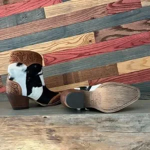 💯Hand Tooled Leather Genuine Cowhide Women Bootie Boot Boho Western Shoe ankle