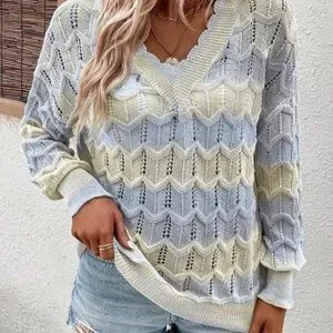 Cozy Pastel Colorblock V Neck Oversized Sweater Top