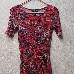 Short sleeve comfy Jersey knit stretchy material ties to the side. Like New PTP 13 42 length