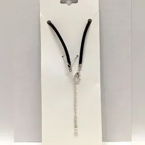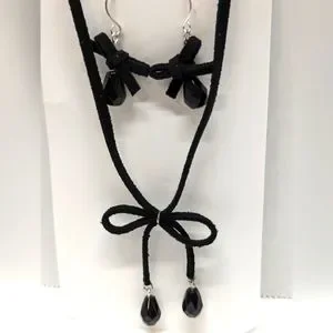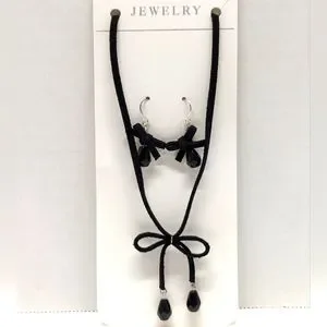 Black Suede Choker and Earrings Set with Plastic Jewel Pendants