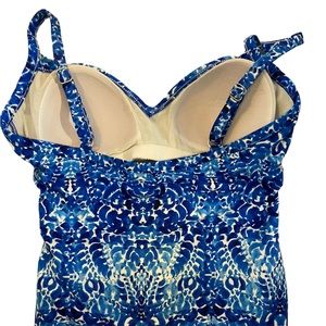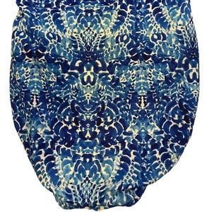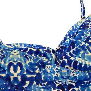 One Piece Swimsuit in Royal Blue & White. Side ruching. Adjustable straps. Built in bra. Lined. Vivid shade of blue & white. Size 10