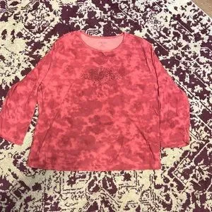 Xl but fits like a large, light Sonoma reddish pink tie dye long sleeve shirt.
