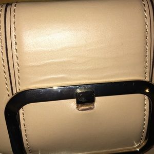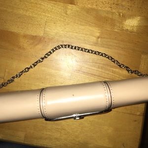 Tan color in very good condition worn once perfect interior. golden chain slightly tarnished. Perfect for a night out and completing an outfit. I hate to part with this. Look at all pics for hardly noticeable flaws ripples on the closure.