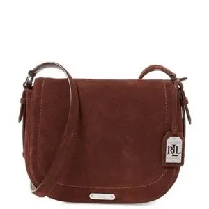 Lauren Ralph Lauren Glennmore Collection Larisa Saddle Bag, this saddle bag is made from luxurious suede and has a polished "LRL" buckle detail at the front. Adjustable shoulder strap, 21" drop Magnetic snap closure Detachable luggage tag with a signature ""LRL""-cutout plaque Buckle detail with an engraved ""LRL"" monogram 1 Interior zip pocket 3 interior slip pockets Fully lined Suede/Leather/polyester