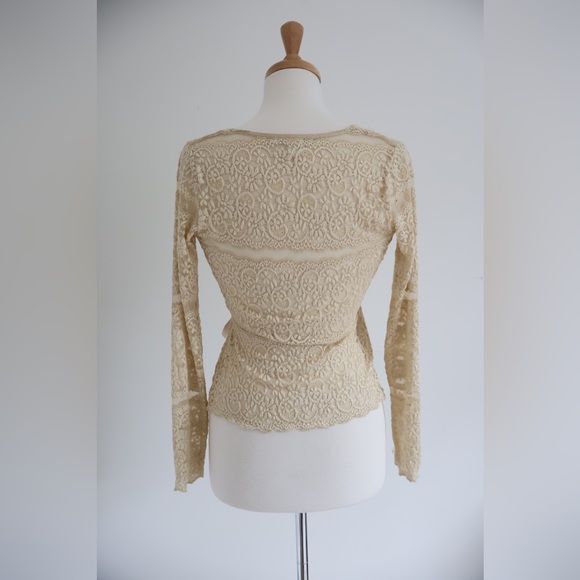 Banana Republic Cream Lace Front Crossover Top with Satin Bow Tie Extra Small