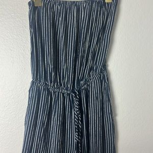Abercrombie & Fitch Navy and White Strapless Pinstripe Jumpsuit