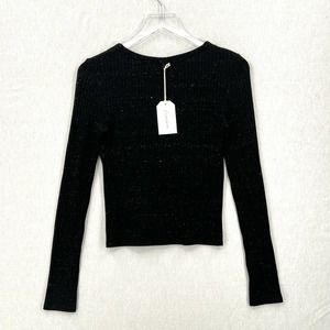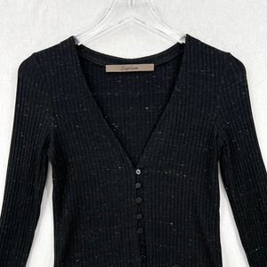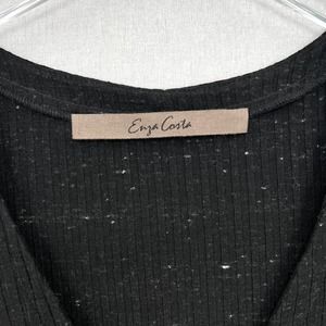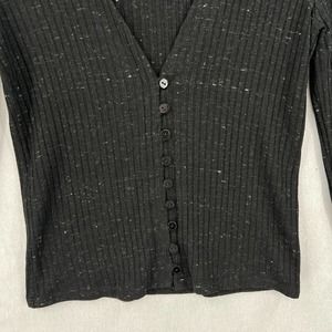 ENZA COSTA Long Sleeve Cardigan Womens Small Black Speckle V-neck Ribbed NWT