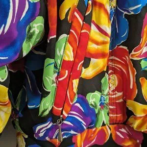 Obermeyer Daisy Floral Ski Jacket with lots of zip up pockets, drawstring waist and hooded. Fully lined.