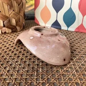 Brown Glazed Polka-Dot Mid Century Modern Ceramic Boomerang/Paisley Ashtray