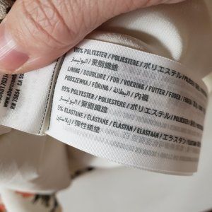 Has been worn and loved and I will miss this dress a lot. In a lovely ivory/cream base with large flowers across the dress. In a faux wrap, has a size zipper, lining, flutter sleeves, and a center chest clasp. No flaws or stains