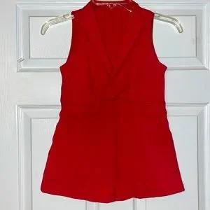 Super pretty v neck tank. Can wear collar up or fold down. Has minor wash wear overall great condition.