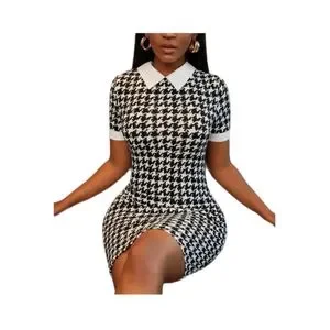NWOT Houndstooth Print Collar Bodycon Dress