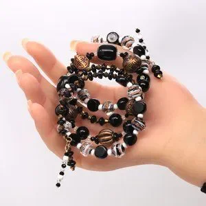 Beautiful black Pearl bracelet with copper, black and white color accents.