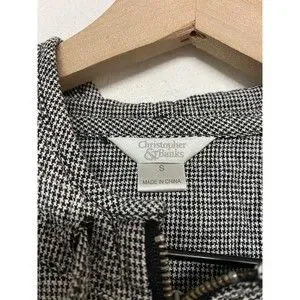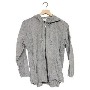 Christopher & Banks Full Zip Jacket Top Lightweight Women Sz Small Black White Linen.