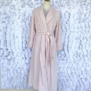 Oscar De La Renta LONG Pink Plush Textured Bath Robe Small NWOT.