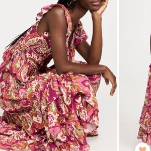 New With Tags Love The Label Salome Metallic Maxi Dress in Marrakech Pink Print Size Large from Shopbop. Purchased for $395. Excellent wedding guest dress.